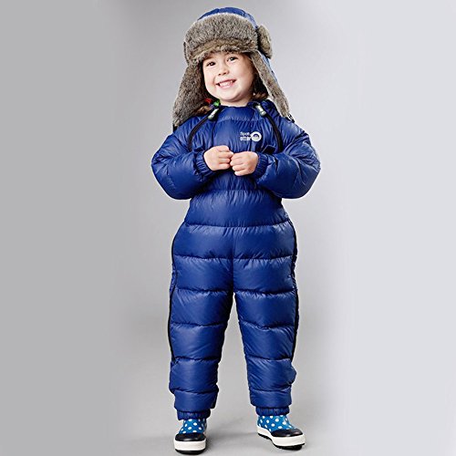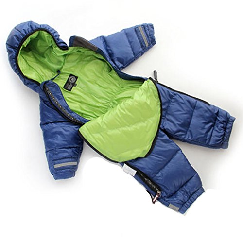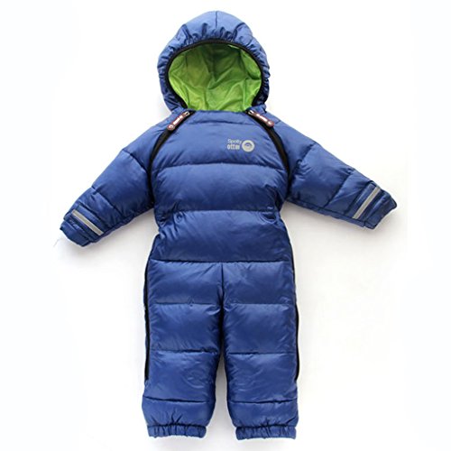 GnasusuB キッズ ベビー カバーオール ロンパース ダウンジャケット ボディスーツ 防寒アウター フード付き スキーウェア アウタースーツ 連体衣装 (2-3才, こんぺき)