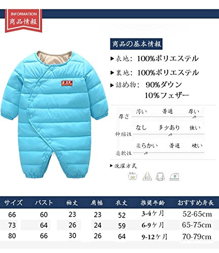 GnasusuB キッズ ベビー カバーオール ロンパース ダウンジャケット子供用つなぎ ダウンジャケット 防寒アウター アウタースーツ連体衣装 (ブルー, 73)