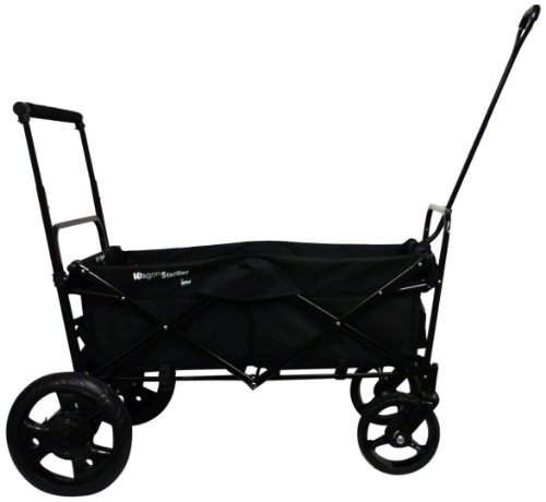 GO-GO BABYZ FOLDING WAGON STROLLER CART with Push Handle and Rear Foot Brake, black by Go-Go Babyz