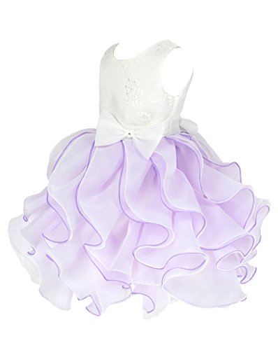 オーガンザ、洗礼式 ベビードレス、ページェント 幼児ドレス、サイズ S/M/L/XL (75cm, ベージュ&ライラック) L861b-S
