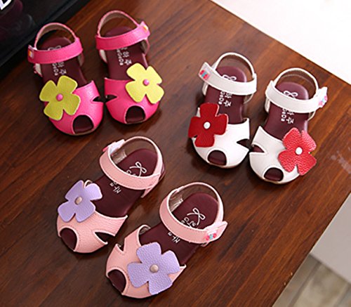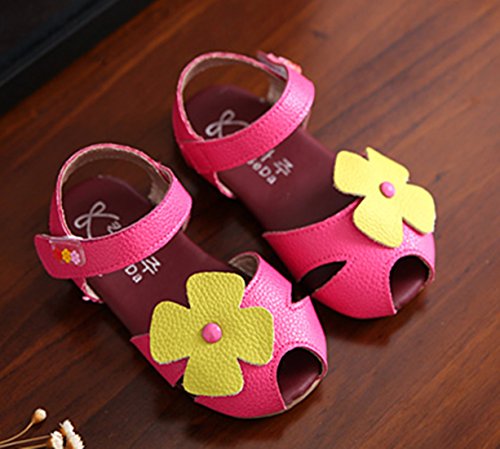 GoGokids可愛い ベビー 女の子 サンダル つま先 保護 お花 モチーフ 女児 子供靴シューズ 結婚式 発表会 演奏会 入園式 卒園式 ドレス (14.5cm, バラ色)