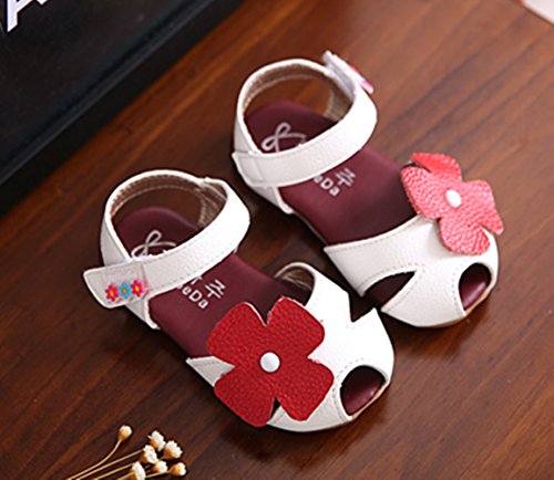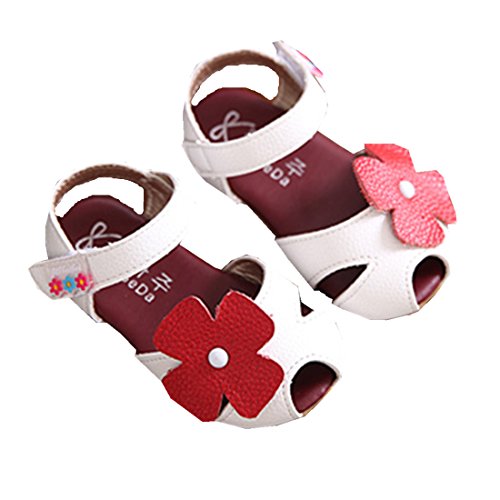 GoGokids可愛い ベビー 女の子 サンダル つま先 保護 お花 モチーフ 女児 子供靴シューズ 結婚式 発表会 演奏会 入園式 卒園式 ドレス (14cm, ホワイト)