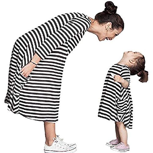 GoGokids 親子 ペア ワンピース ボーダー 柄 フレア ワンピ 7分 七分袖 長袖 ポケット 付き Aライン ペアルック おそろい おでかけ コーデ マタニティ トドラー 女の子 ガールズ キッズ入学式 入園式 卒業式 卒園式 (ママサイズ)