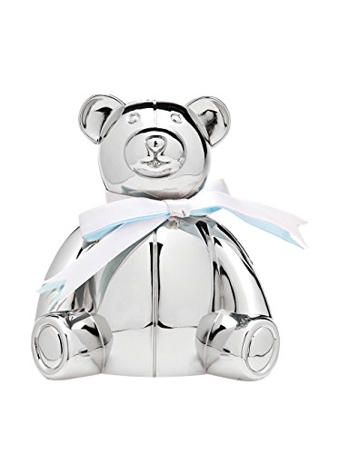 Godingerシルバーアート赤ちゃん新生児Teddy Bear Money Savings Coin Piggy Bank withブルーandホワイトLaces