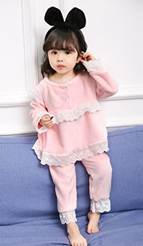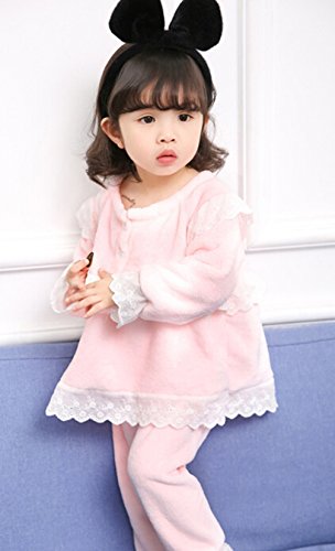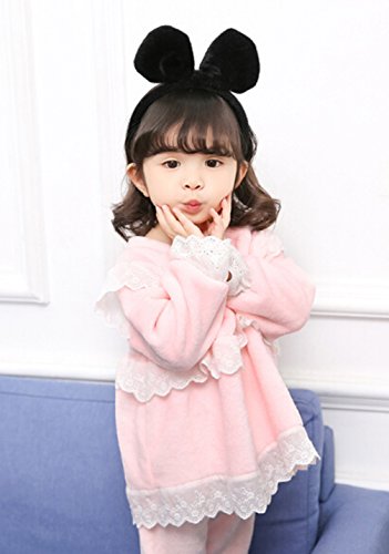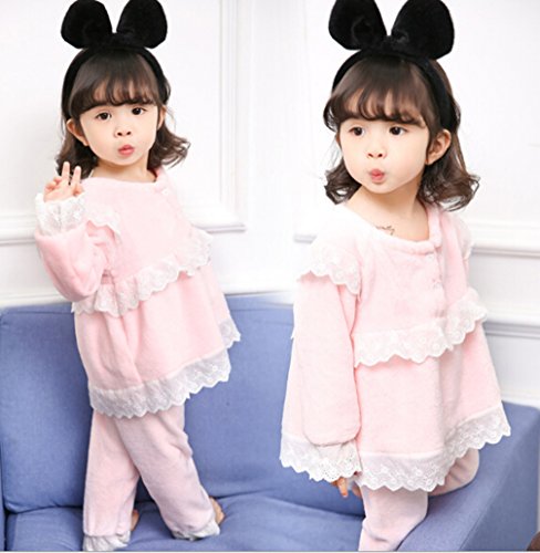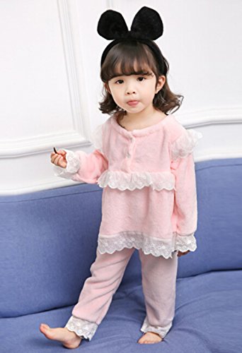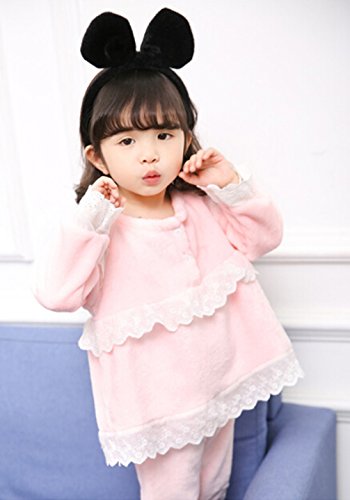 Godlovefullふわふわ もこもこ あったか 柔らかい 長袖 キッズ ジュニア ベビー ガールズ パジャマ 子供服 女の子 パジャマ ルームウェア 上下セット 綿100% ウェストゴム 厚手 かわいい 秋冬 部屋着 寝巻き 寝間着 ナイトウェア (ピンク, 120cm)