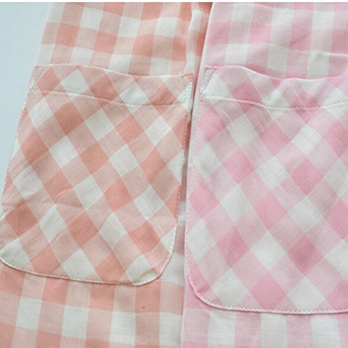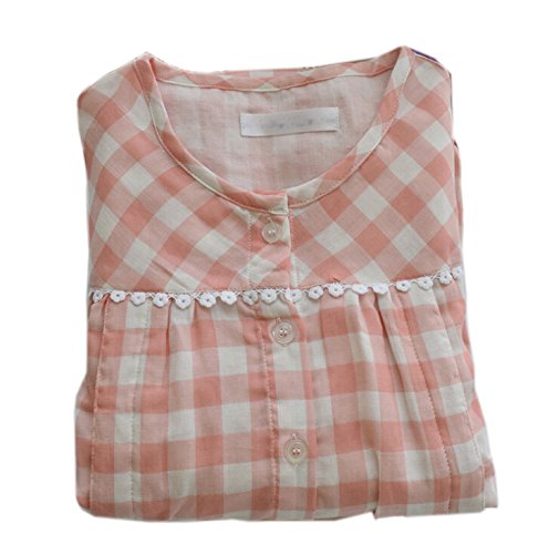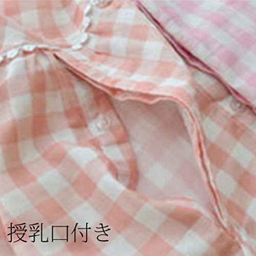Godlovefull ネグリジェ 前開き 長袖 チェック柄 春 夏 秋 ロング丈 綿 ルームワンピース ルームウェア 2重ガーゼ 部屋着 入院 産後 授乳口付き マタニティ パジャマ (M, オレンジ)