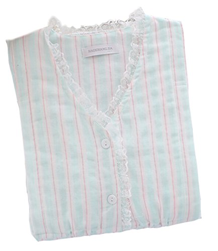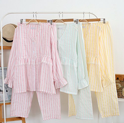 Godlovefullレディース パジャマ 上下セット 前開き 長袖 春夏秋 綿 ルームウェア 2重ガーゼ 部屋着 寝間着 便利服 柔らかい 入院 産後 授乳口付き マタニティ パジャマ (XL, グリーン)