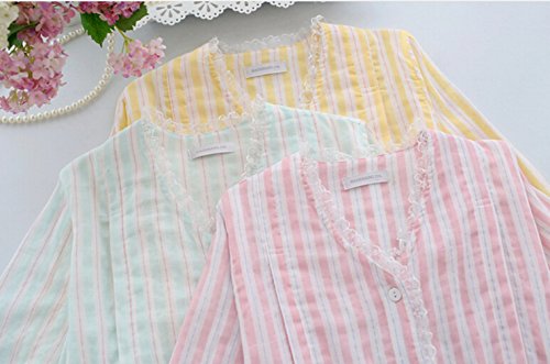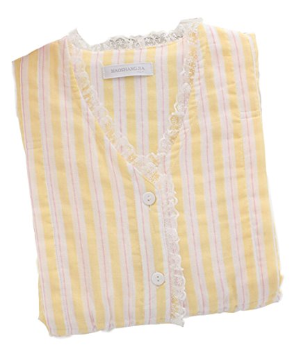 Godlovefullレディース パジャマ 上下セット 前開き 長袖 春夏秋 綿 ルームウェア 2重ガーゼ 部屋着 寝間着 便利服 柔らかい 入院 産後 授乳口付き マタニティ パジャマ (XL, イエロー)