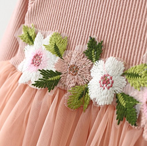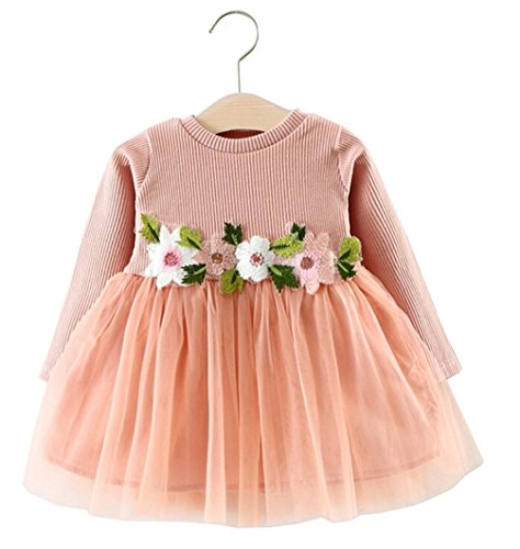 Godlovefullワンピース 子供 ベビー服 女の子 お姫様 ドレス 赤ちゃん 可愛い チュール切り替え 花刺繍 おしゃれ ふわふわ キッズドレス ガールズ 女児 出産祝い 入園式 卒園式 ジュニア 遊戯会 日常服 子供フォーマル (80, ピンク)