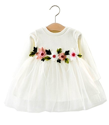 Godlovefullワンピース 子供 ベビー服 女の子 お姫様 ドレス 赤ちゃん 可愛い チュール切り替え 花刺繍 おしゃれ ふわふわ キッズドレス ガールズ 女児 出産祝い 入園式 卒園式 ジュニア 遊戯会 日常服 子供フォーマル (70, ホワイト)