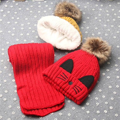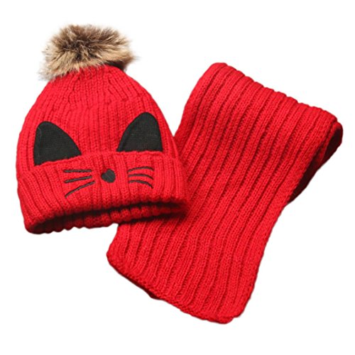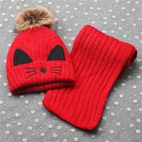 Goenn ニット帽子 &マフラー セット ベビー 赤ちゃん帽子 冬 かわいい 防寒 冬 しもやけ 対策 キッズ子供用 誕生日、お祝い、プレゼント かわいい防寒帽子 公園 お出かけ お散歩 (レッド)