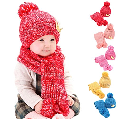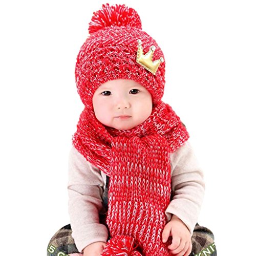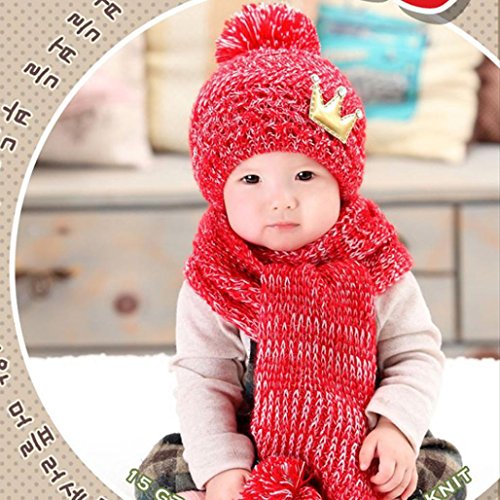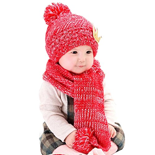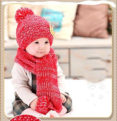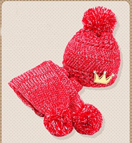 Goenn ニット帽子 &マフラー セット ベビー 赤ちゃん帽子 冬 かわいい 防寒 冬 しもやけ 対策 キッズ子供用 誕生日、お祝い、プレゼント かわいい防寒帽子 公園 お出かけ お散歩 (レッド)