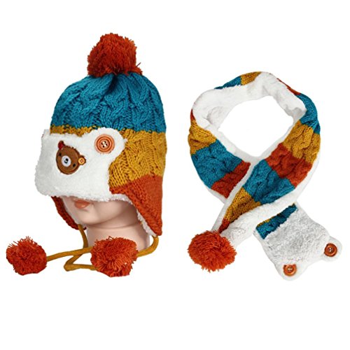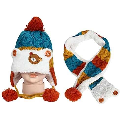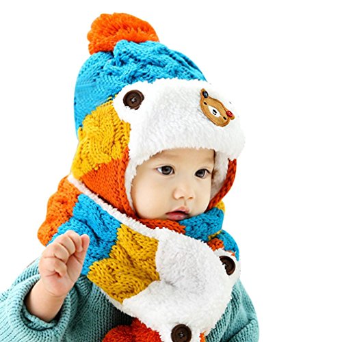 Goenn ニット帽子 &マフラー セット ベビー 赤ちゃん帽子 冬 かわいい 防寒 冬 しもやけ 対策 キッズ子供用 誕生日、お祝い、プレゼント かわいい防寒帽子 公園 お出かけ お散歩 (ブルー)