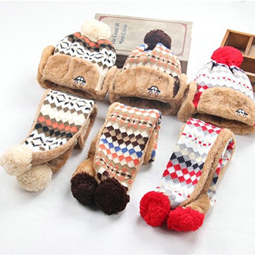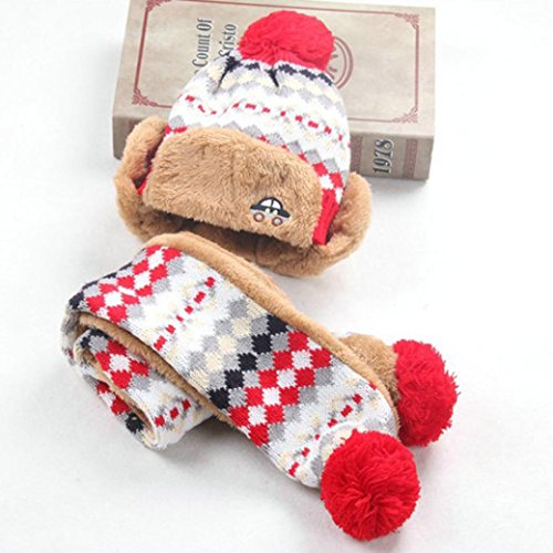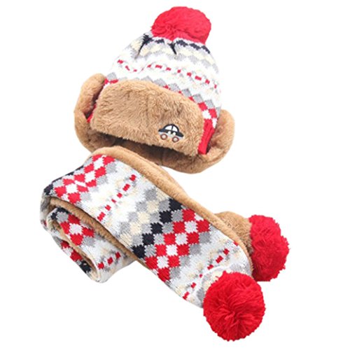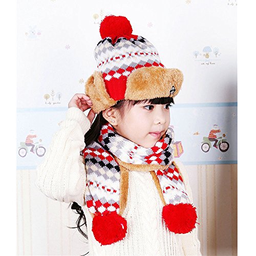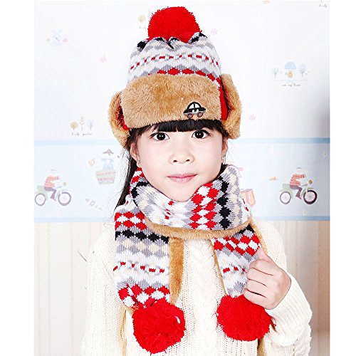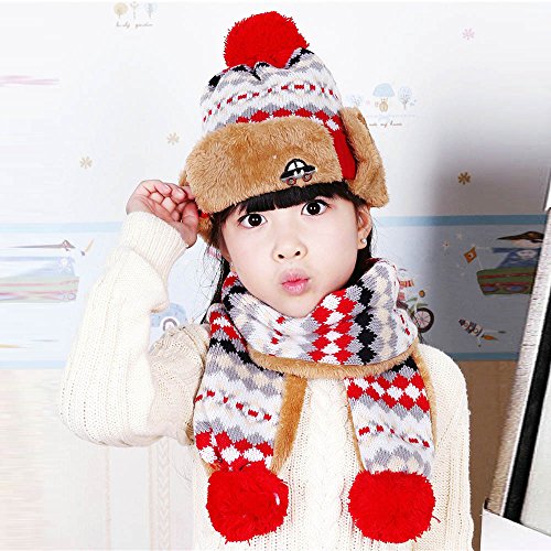 Goenn ニット帽子 &マフラー セット 子供 帽子 冬 かわいい 防寒 冬 しもやけ 対策 キッズ 子供用 誕生日 お祝い プレゼント 防寒帽子 公園 お出かけ お散歩 (レッド)