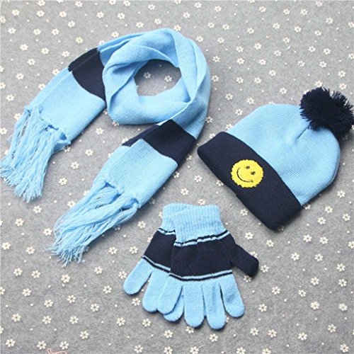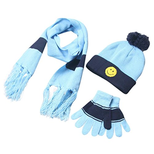 Goenn 3点セット かわいい ベビー 赤ちゃん 帽子 &マフラー& ニット グローブ セット 冬 防寒 しもやけ 対策 キッズ子供用 誕生日、お祝い、プレゼント 公園 お出かけ お散歩 (スカイブルー)