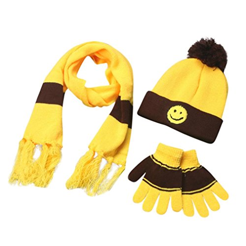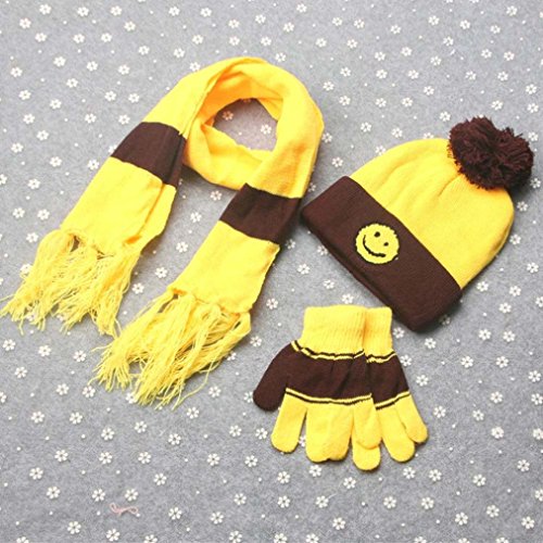 Goenn 3点セット かわいい ベビー 赤ちゃん 帽子 &マフラー& ニット グローブ セット 冬 防寒 しもやけ 対策 キッズ子供用 誕生日、お祝い、プレゼント 公園 お出かけ お散歩 (イエロー)