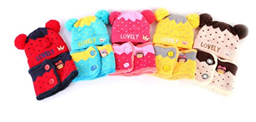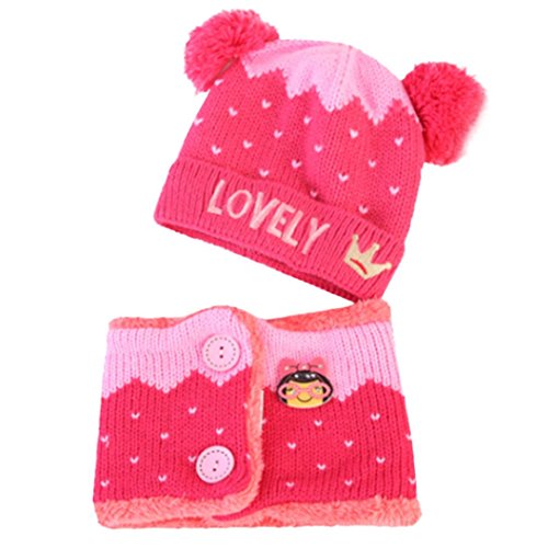 Goenn ニット帽子 &マフラー セット ベビー 赤ちゃん帽子 秋冬 男の子 女の子 かわいい 防寒 しもやけ 対策 キッズ 子供用 誕生日、お祝い、プレゼント 公園 お出かけ お散歩 (ホットピンク)