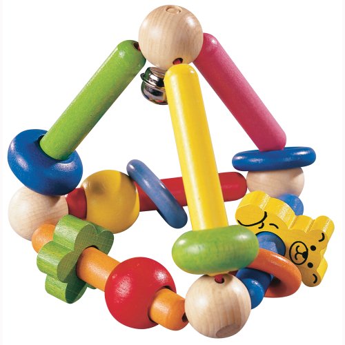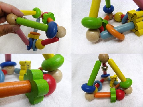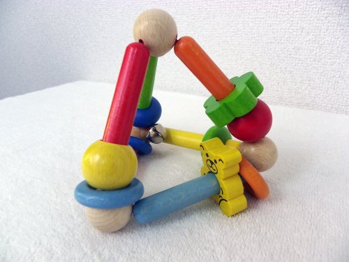 くまさんやお花、ビーズがたくさんついたかわいいトライアングル型のラトル。 トライアングル状の木製のガラガラは赤ちゃんが簡単につかんで遊べるように 持ちやすくデザインされています。