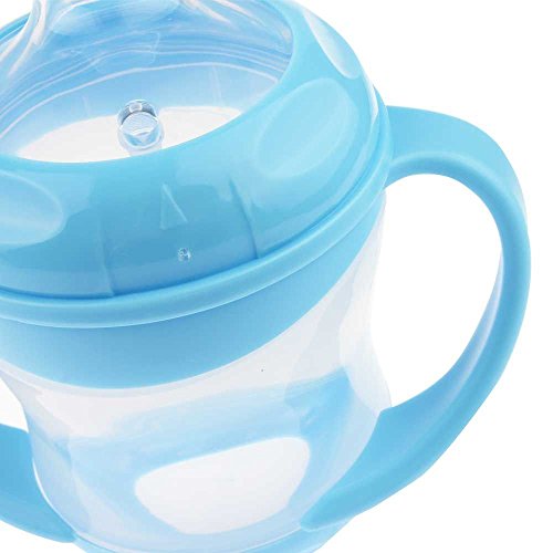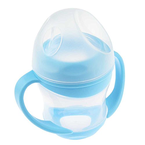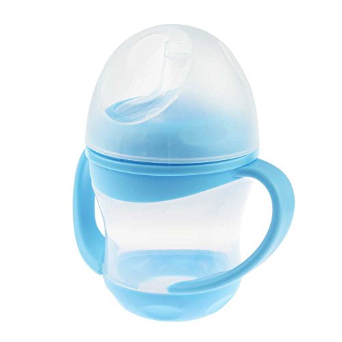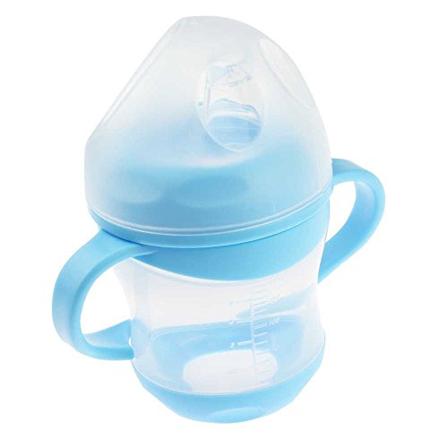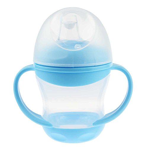 赤ちゃんのストローボトル かわいい 子供幼児ソフト ダックビル口飲むボトル ハンドル シッピー カップ ?160 ML ブルー