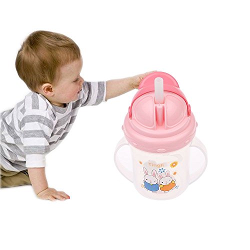 赤ちゃん幼児ボトル ?かわいいストローマグ ストロー ハンドル水ミルク シッピー カップ 150 ML ピンク