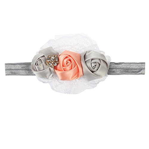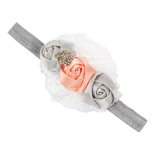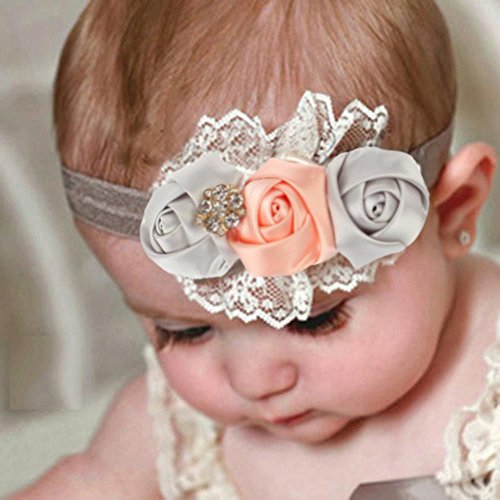 2016最新 ファッションレースローズフラワーヘッドバンド リボン 女の赤ちゃんの子供のヘアアクセサリー グレー
