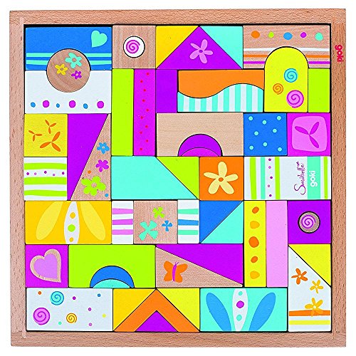 Match game consisting of wood. Various shapes and patterns can be with the individual parts and put together.
