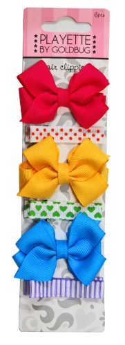 goldbug ヘアーピン リボン・総柄6個セット グログラン地 ポリエステルシリコンゴム滑り止め付ヘアーピン6個セット 23027