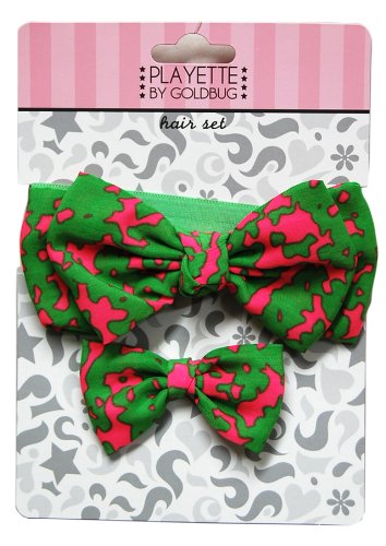Gold Bug 2P ネオンカラーヘアーセット リボンヘアーバンド&クリップ グリーン・レッド 23237