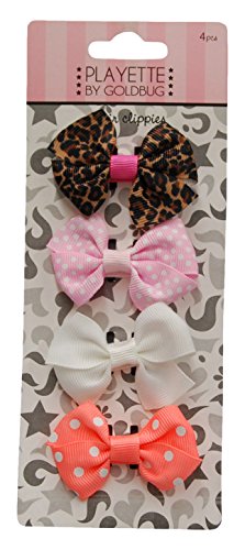 "GOLDBUG" Hair Clip, 4Pグログランリボンヘアークリップ アニマル柄・ピンク・ホワイト・オレンジ 23489