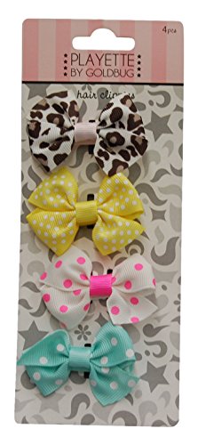 GOLDBUG グログランリボンヘアークリップ 4P アニマル柄・イエロー・ピンク・ブルー 23490
