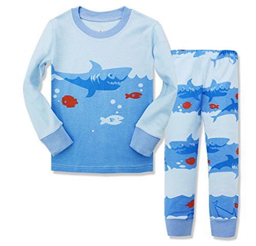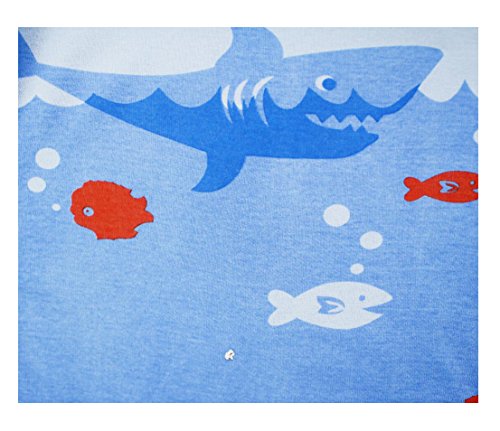 Gold treasure綿100%子供パジャマ長袖 キッズ 漫画のサメ寝間着2-7歳 (130cm(7歳))