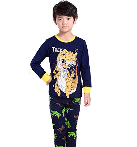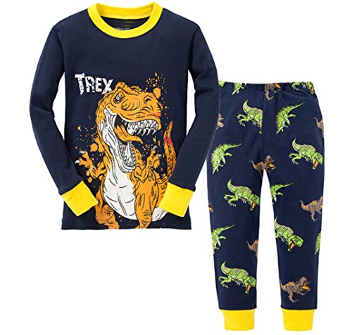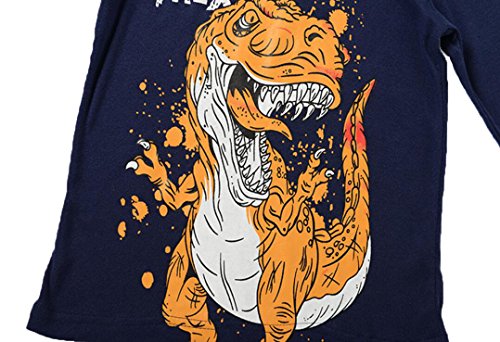 Gold treasure綿100%子供パジャマ長袖 キッズ 漫画のティラノサウルス寝間着2-7歳 (90cm(2歳))