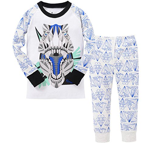 Gold treasure綿100%子供パジャマ長袖 キッズ 漫画の機械的恐竜寝間着2-7歳 (90cm(2歳))