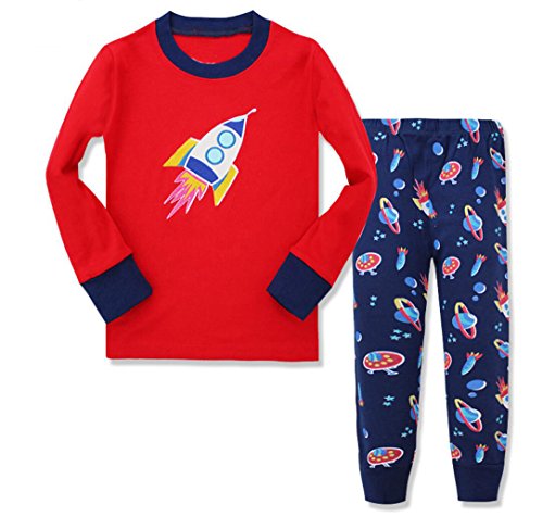 Gold treasure綿100%子供パジャマ長袖 キッズ 漫画のロケット打ち上げ寝間着2-7歳 (120cm(6歳))