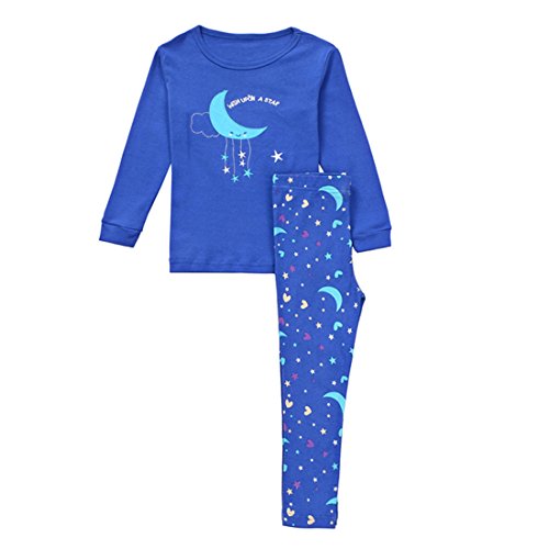 Gold treasure綿100%子供パジャマ長袖 キッズ 漫画の月と星寝間着2-7歳 (130cm(7歳))