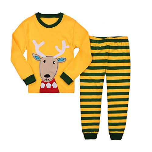 Gold treasure綿100%子供パジャマ長袖 キッズ 漫画の クリスマスのトナカイ寝間着2-7歳 (130cm(7歳))