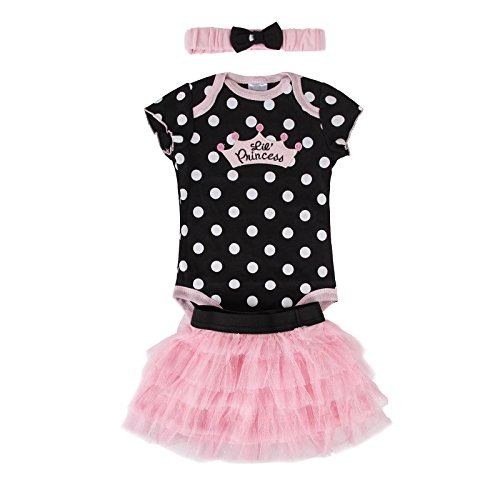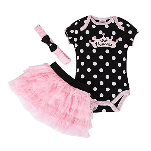 Gold treasure ベビー 女の子 ロンパース スカート3点 セット ヘッドバンド ピンク 水玉 年齢 3-24ヶ月