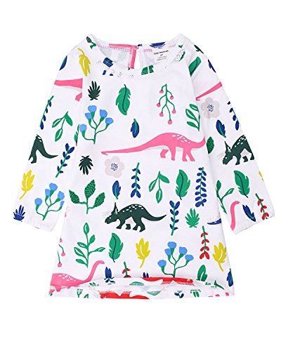 子供カジュアルドレス 女の子ナイトガウン 綿100% ロングTシャツ ワンピース 恐竜のスタイル 長袖パジャマ 2-7歳用 (5歳(110cm))