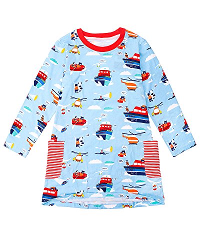 子供カジュアルドレス 女の子ナイトガウン 綿100% ロングTシャツ ワンピース 船のスタイル 長袖パジャマ 2-7歳用 (7歳(130cm))
