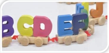 電車の上にアルファベットが乗っているお子様向け玩具です。カラフルでかわいさいっぱいですよ♪