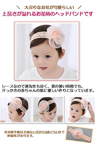 - レースのヘアーバンドに可愛い大ぶりのお花、リボンがついたとっても可愛いベビーちゃんのヘッドバンドです♪ 伸縮性がしっかりあるので、生後6ヶ月から5歳前後まで着用することができます。