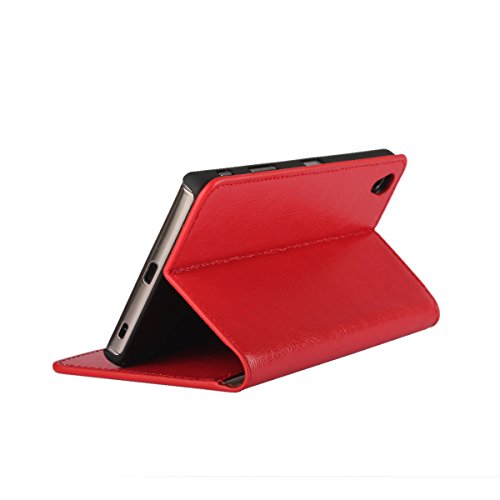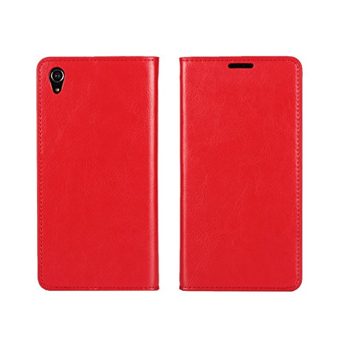 Golikef Sony Xperia Z5 Premium ケース カバー バンパー 手帳型 高級 本革 レザー 色鮮やか レトロ な book case 型 柔らかいシリコンTPUラバーカバー スタンド機能 カード収納機能 アイフォン 手帳 スマホケース カード収納ポケット付き マグネット式 ストラップ付き スマートフォン保護ケース 両面プリントデザイン レッド