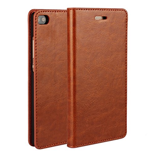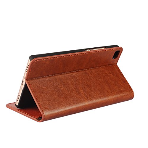 Golikef Huawei P8 ケース カバー バンパー 手帳型 高級 本革 レザー 色鮮やか レトロ な book case 型 柔らかいシリコンTPUラバーカバー スタンド機能 カード収納機能 アイフォン 手帳 スマホケース カード収納ポケット付き マグネット式 ストラップ付き スマートフォン保護ケース 両面プリントデザイン ライトブラウン
