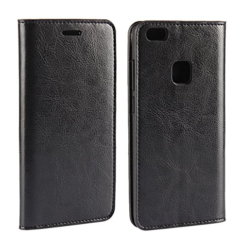 Golikef Huawei P10 Lite ケース カバー バンパー 手帳型 高級 本革 レザー 色鮮やか レトロ な book case 型 柔らかいシリコンTPUラバーカバー スタンド機能 カード収納機能 アイフォン 手帳 スマホケース カード収納ポケット付き マグネット式 ストラップ付き スマートフォン保護ケース 両面プリントデザイン ブラック