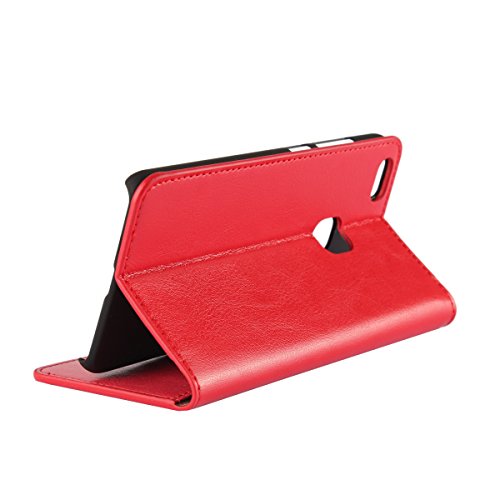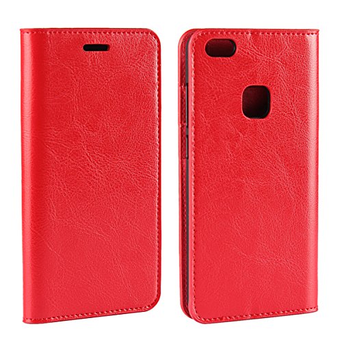 Golikef Huawei P10 Lite ケース カバー バンパー 手帳型 高級 本革 レザー 色鮮やか レトロ な book case 型 柔らかいシリコンTPUラバーカバー スタンド機能 カード収納機能 アイフォン 手帳 スマホケース カード収納ポケット付き マグネット式 ストラップ付き スマートフォン保護ケース 両面プリントデザイン レッド