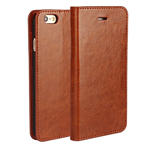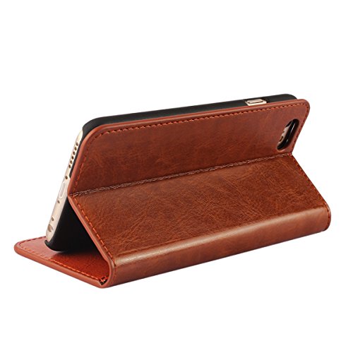 Golikef iPhone 6S iPhone 6 ケース カバー バンパー 手帳型 高級 本革 レザー 色鮮やか レトロ な book case 型 柔らかいシリコンTPUラバーカバー スタンド機能 カード収納機能 アイフォン 手帳 スマホケース カード収納ポケット付き マグネット式 ストラップ付き スマートフォン保護ケース 両面プリントデザイン ライトブラウン