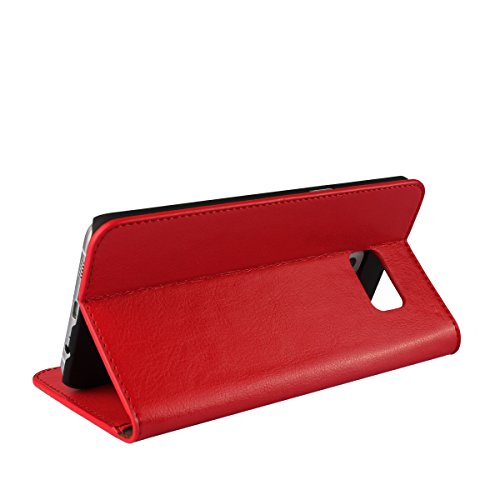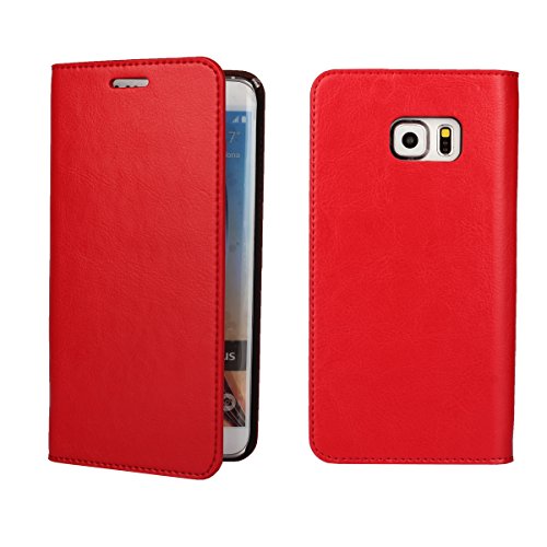 Golikef Samsung Galaxy S6 Edge Plus ケース カバー バンパー 手帳型 高級 本革 レザー 色鮮やか レトロ な book case 型 柔らかいシリコンTPUラバーカバー スタンド機能 カード収納機能 アイフォン 手帳 スマホケース カード収納ポケット付き マグネット式 ストラップ付き スマートフォン保護ケース 両面プリントデザイン レッド