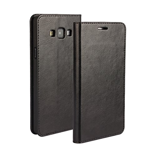 Golikef Samsung Galaxy A7 ケース カバー バンパー 手帳型 高級 本革 レザー 色鮮やか レトロ な book case 型 柔らかいシリコンTPUラバーカバー スタンド機能 カード収納機能 アイフォン 手帳 スマホケース カード収納ポケット付き マグネット式 ストラップ付き スマートフォン保護ケース 両面プリントデザイン ブラック