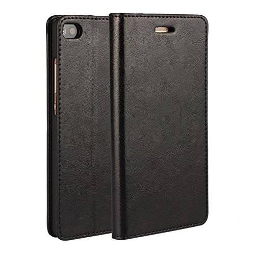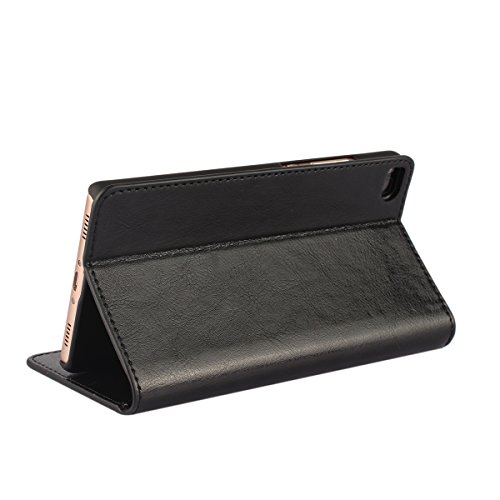 Golikef Huawei P8 ケース カバー バンパー 手帳型 高級 本革 レザー 色鮮やか レトロ な book case 型 柔らかいシリコンTPUラバーカバー スタンド機能 カード収納機能 アイフォン 手帳 スマホケース カード収納ポケット付き マグネット式 ストラップ付き スマートフォン保護ケース 両面プリントデザイン ブラック