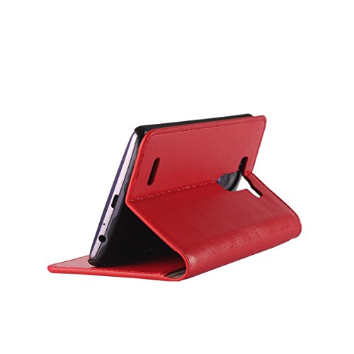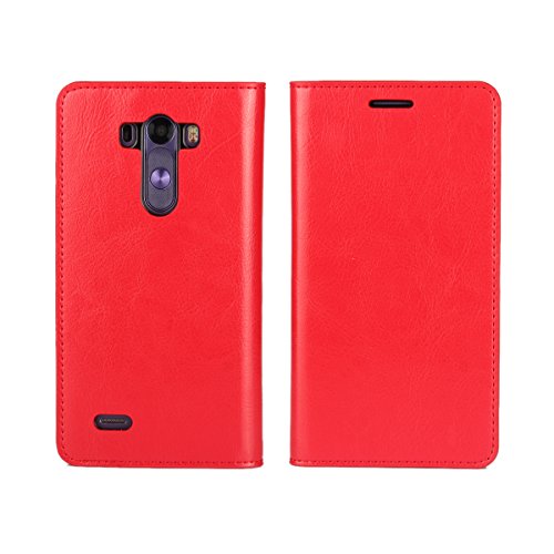 Golikef LG G3 ケース カバー バンパー 手帳型 高級 本革 レザー 色鮮やか レトロ な book case 型 柔らかいシリコンTPUラバーカバー スタンド機能 カード収納機能 アイフォン 手帳 スマホケース カード収納ポケット付き マグネット式 ストラップ付き スマートフォン保護ケース 両面プリントデザイン レッド